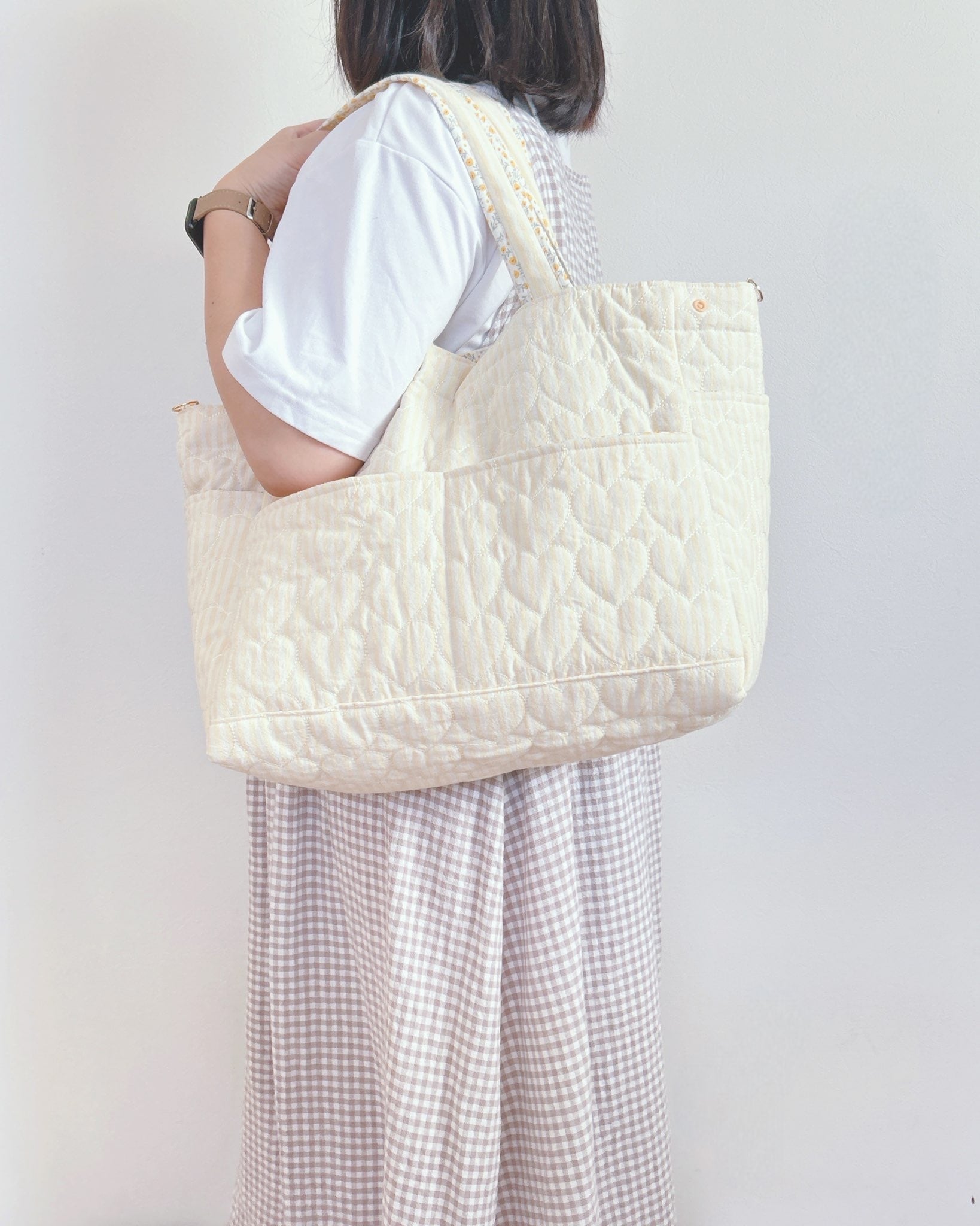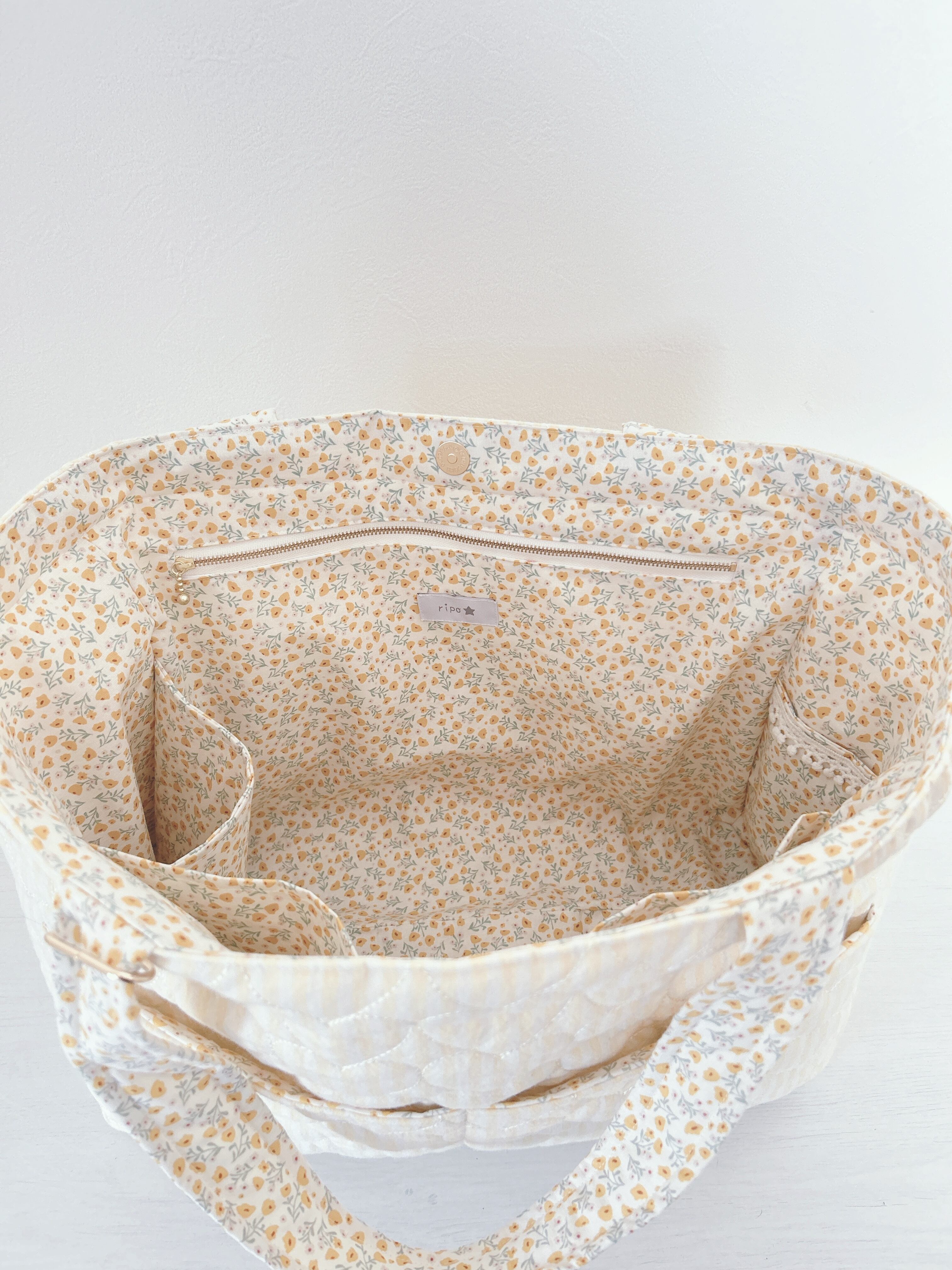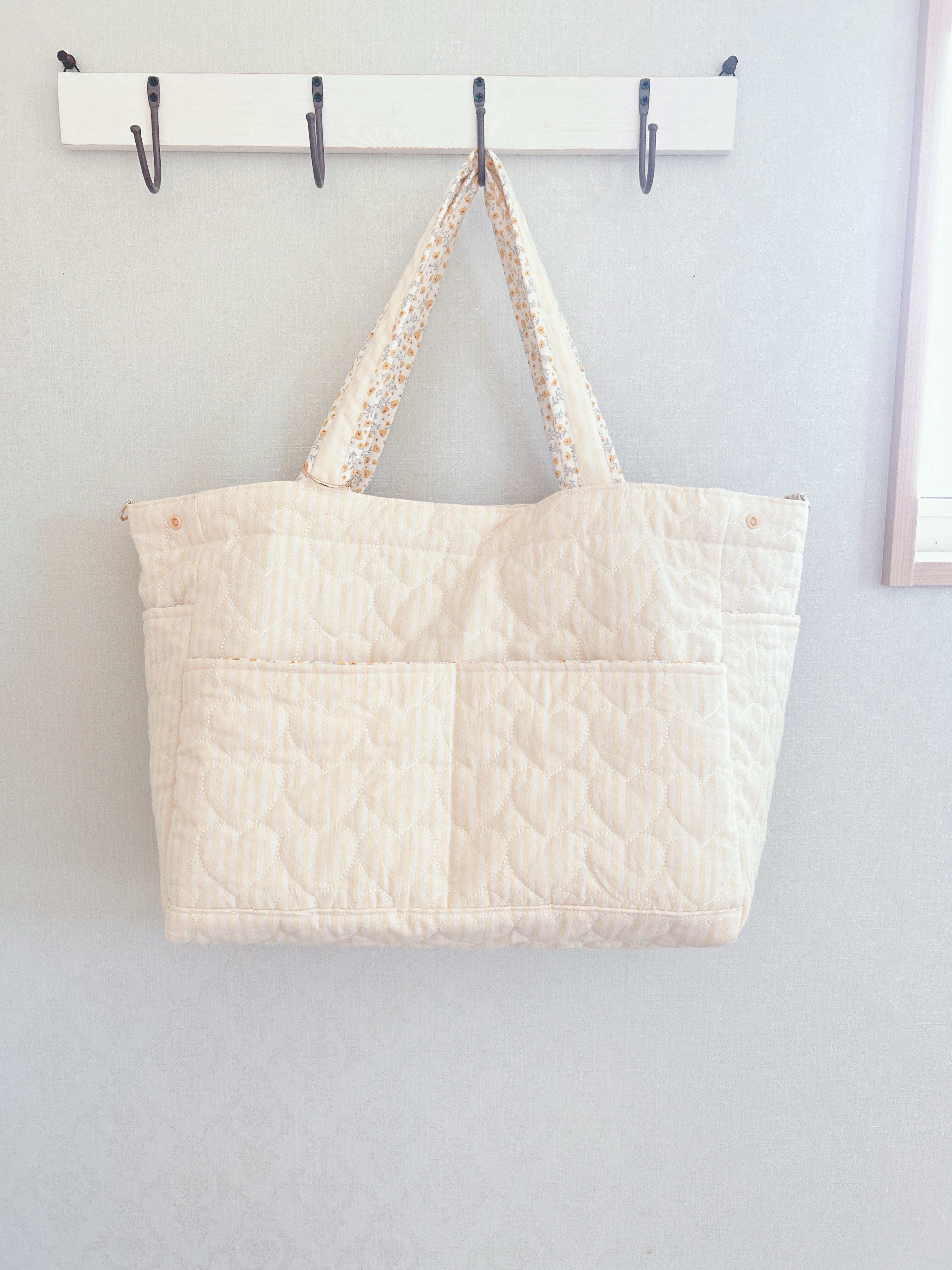 ハートキルティング マザーズバッグ トートバッグ(黄色のストライプとお花)