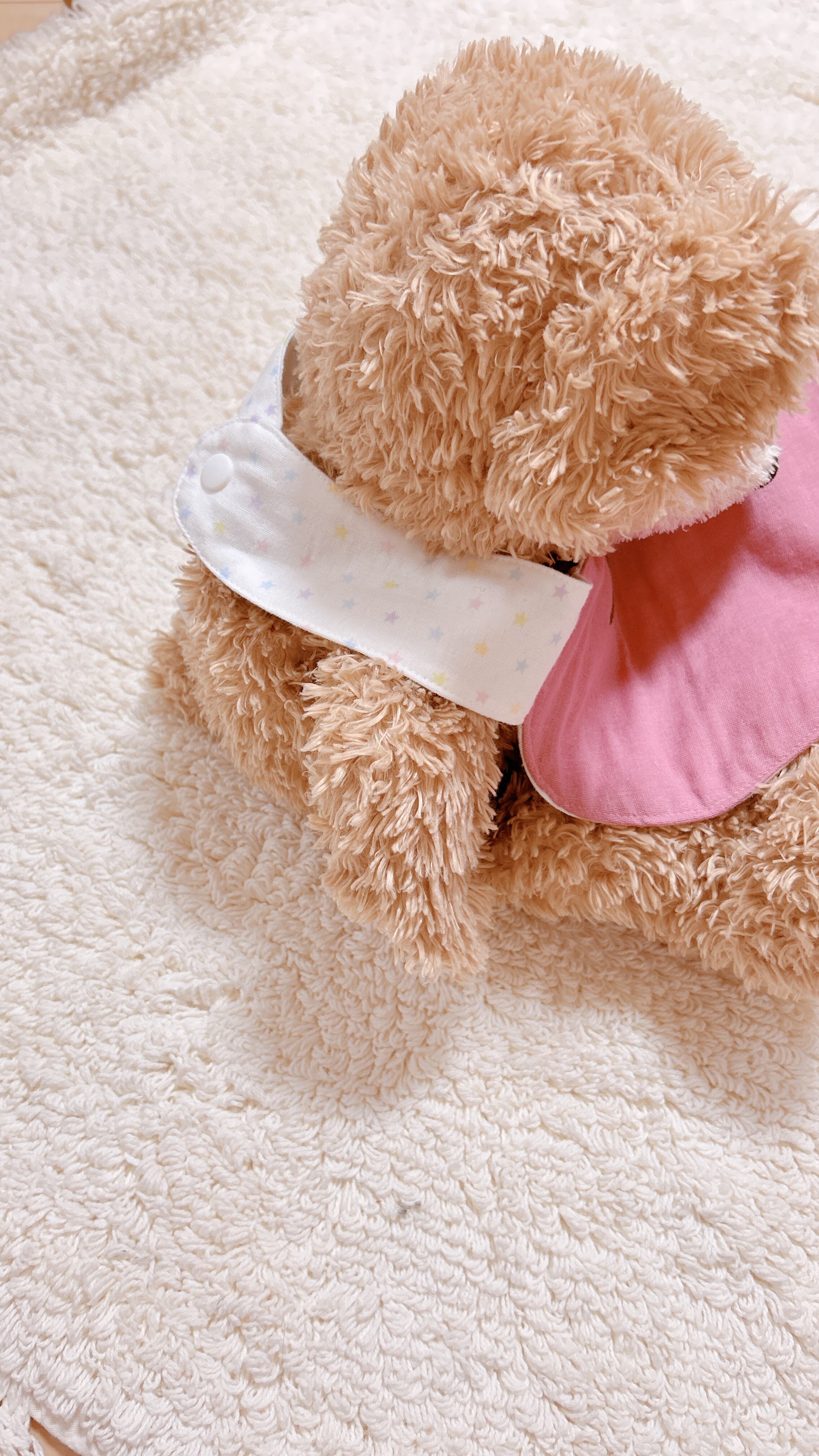 ・中に透湿防水シートが入ってるので、よだれや飲み物等が裏に染み込みにくくなっています。