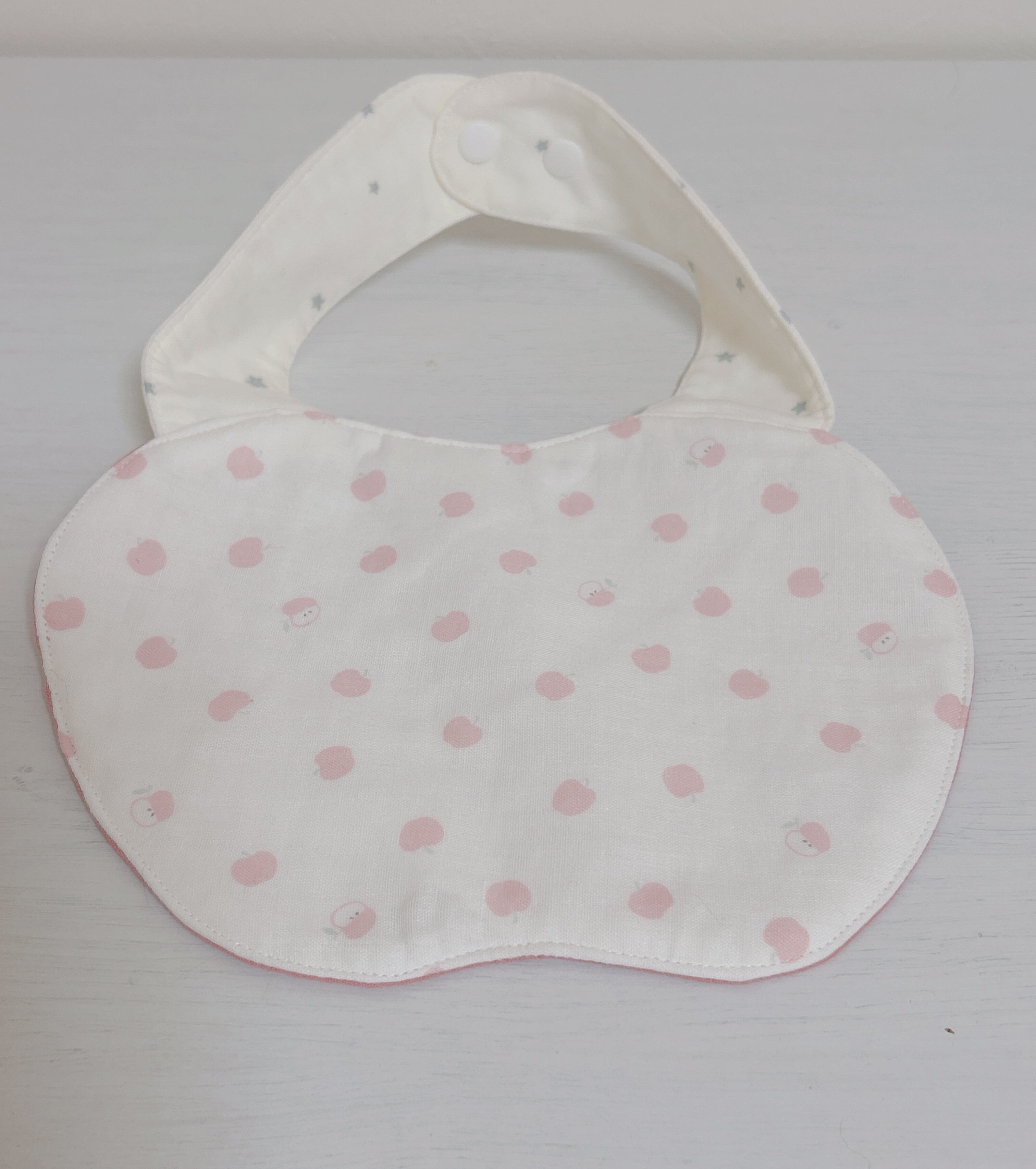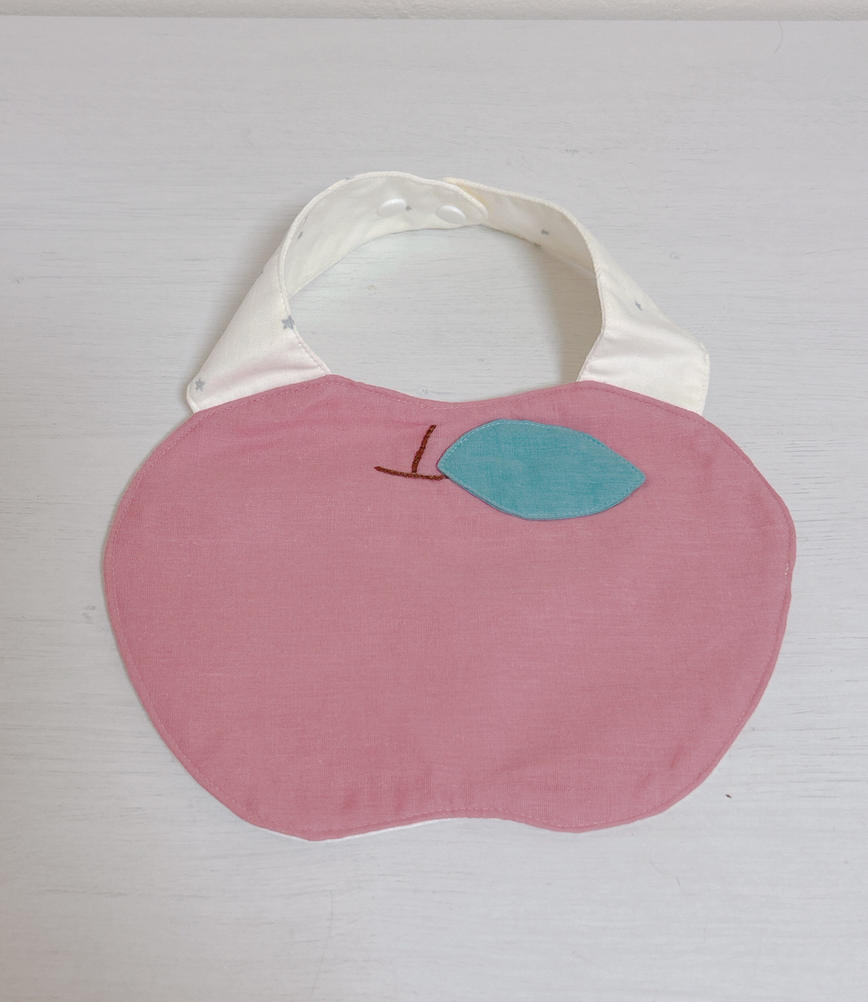 りんごモチーフのリバーシブルで使えるスタイです。