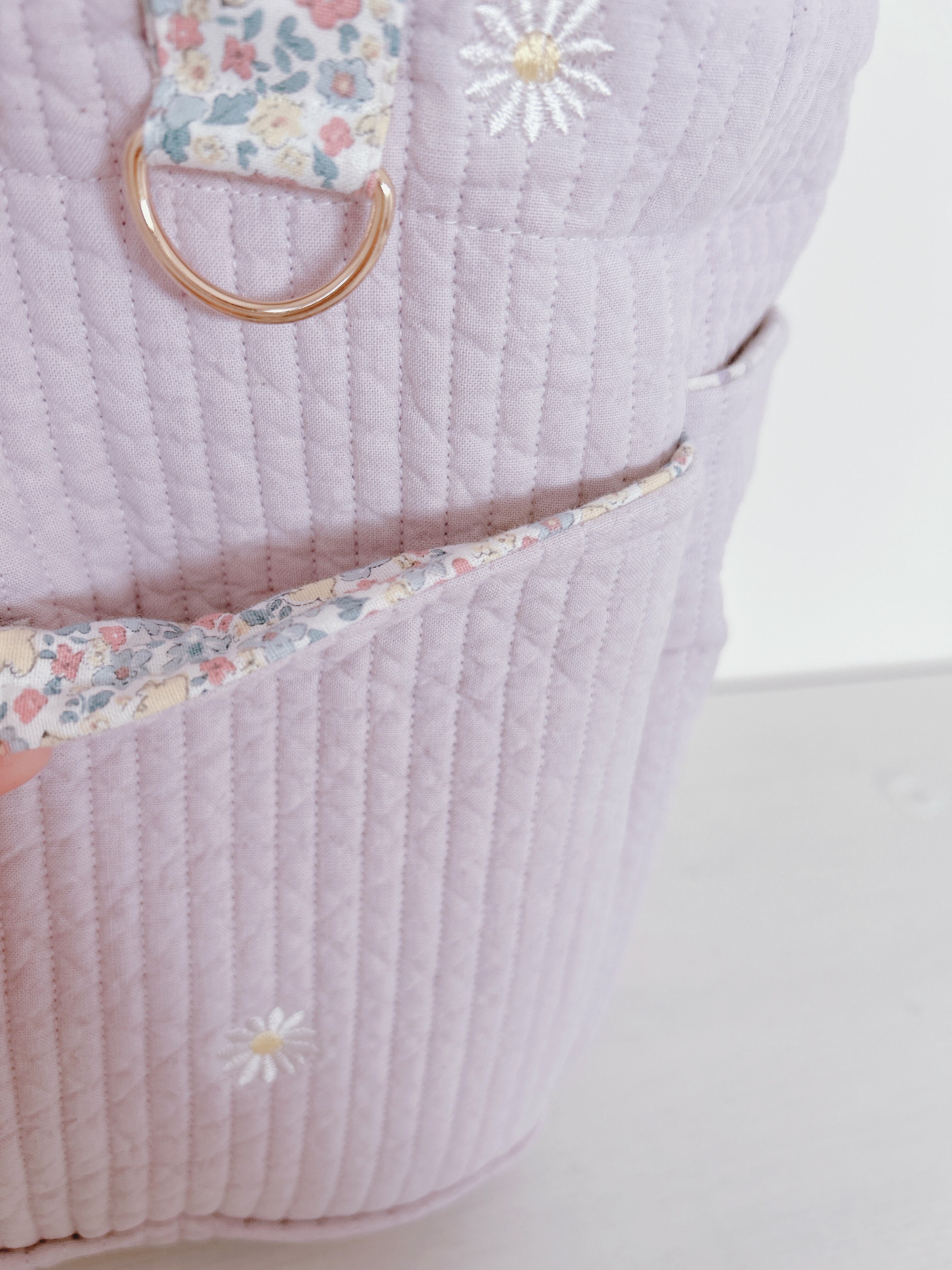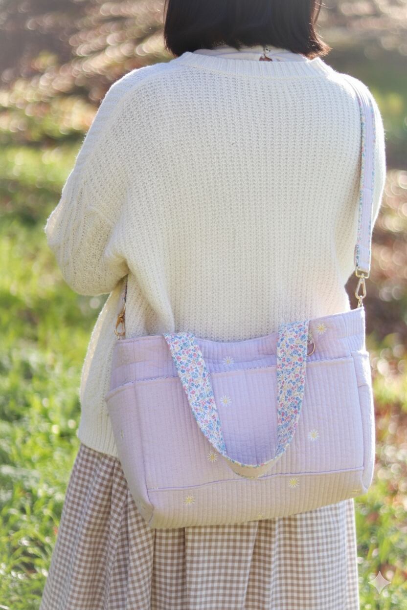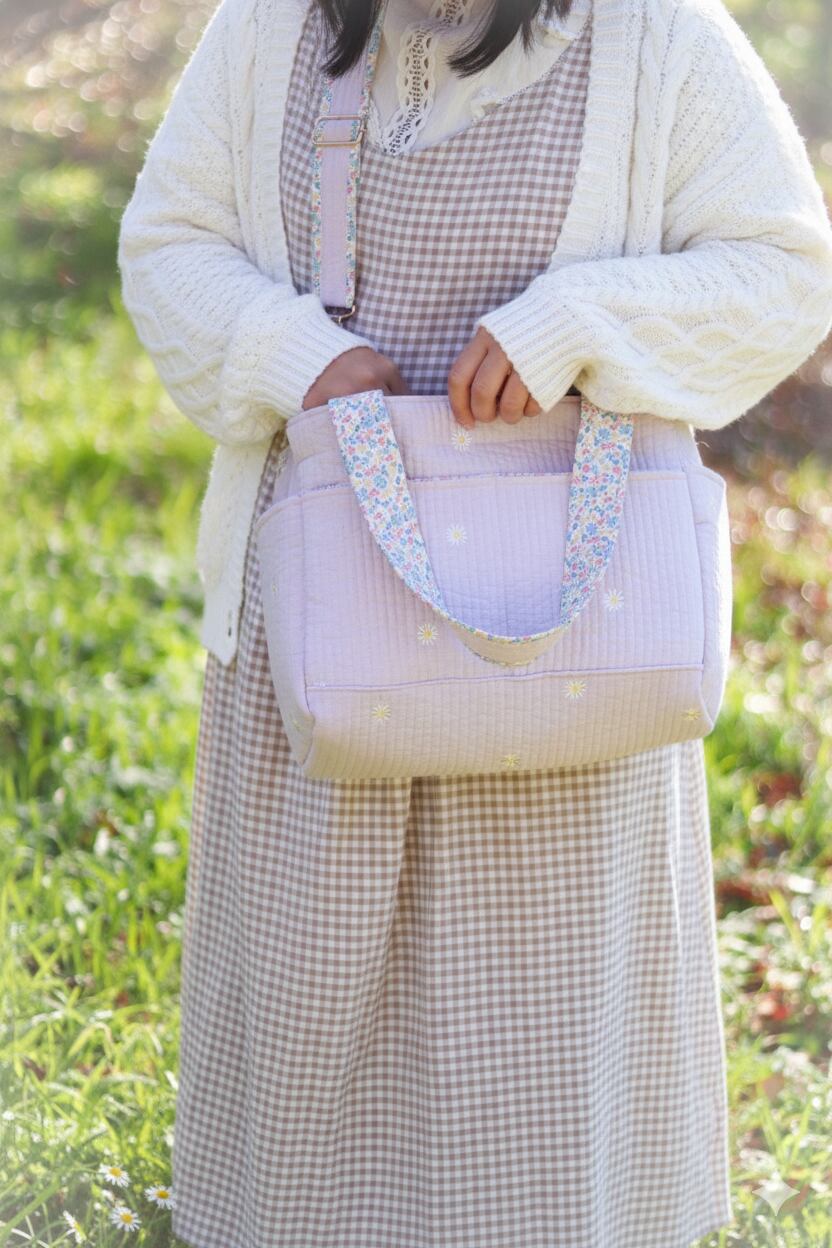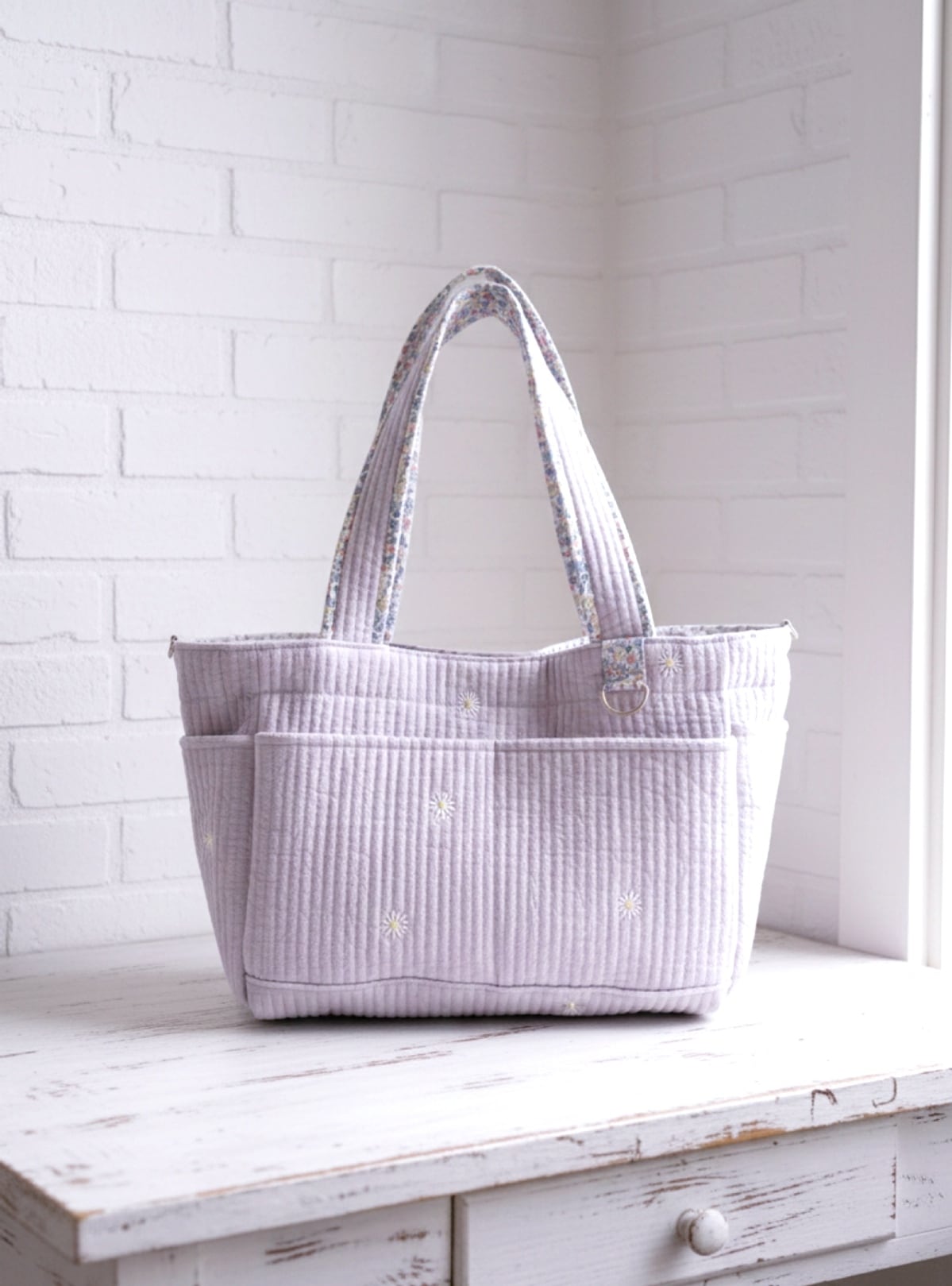 ちょっと小さめマザーズバッグ(ライラック*マーガレット刺繍*小花柄)